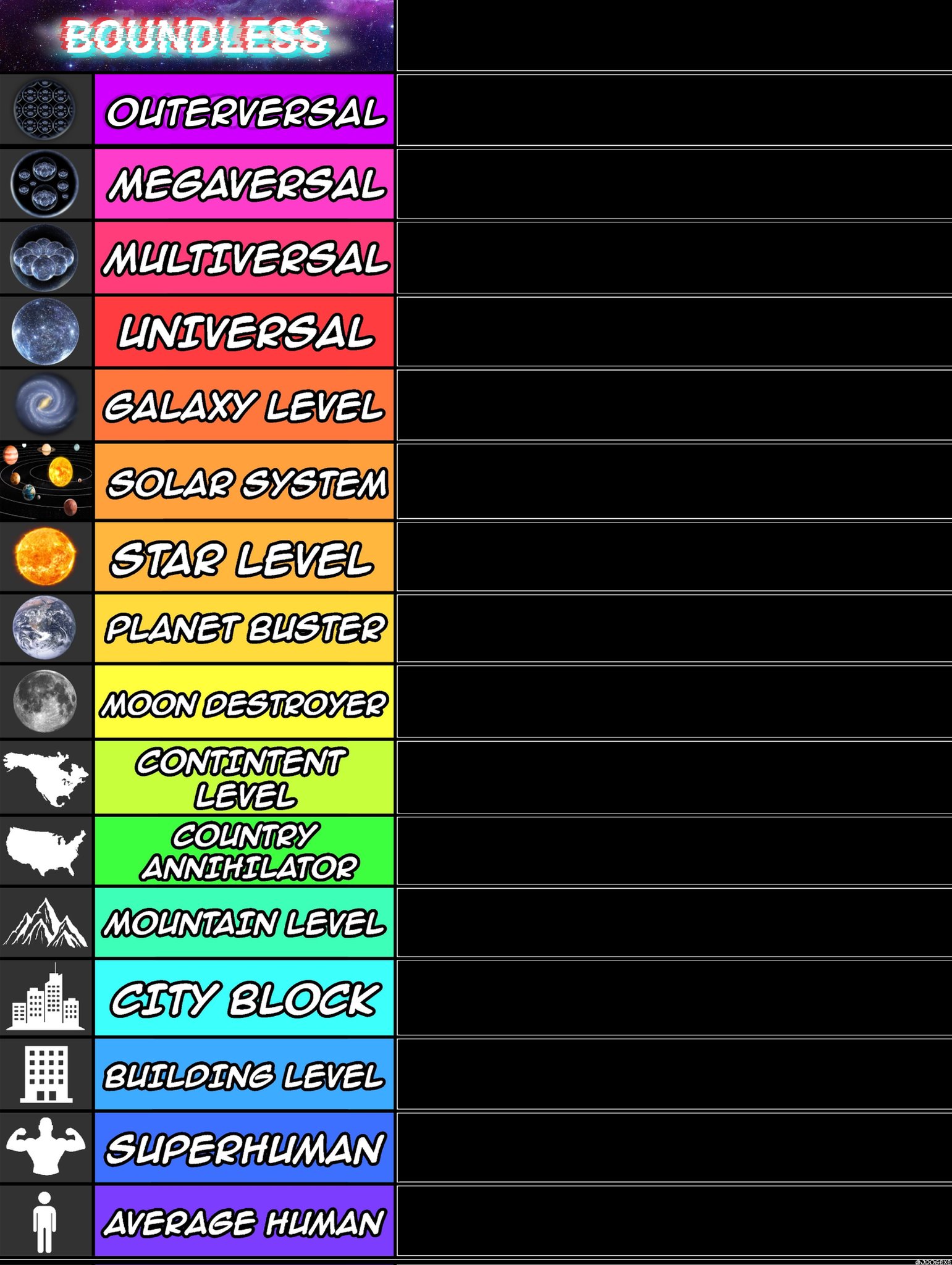Weball outerversal tiers (low, , high) is basically is unreachable you can say to any lower tier under certain degree and extension. Low outer = unreachable by any. Low complex multiverse level. Characters or objects that can universally affect, create and/or destroy spaces whose size corresponds to one to two higher levels of. Characters whose power is on the level of the von neumann universe. That is, they either encompass, or can affect structures which. Weblow outerversal is transcending something thats infinite dimensional or an infinite hierarchy. An infinite hierarchy is where each layer transcends the previous layer.